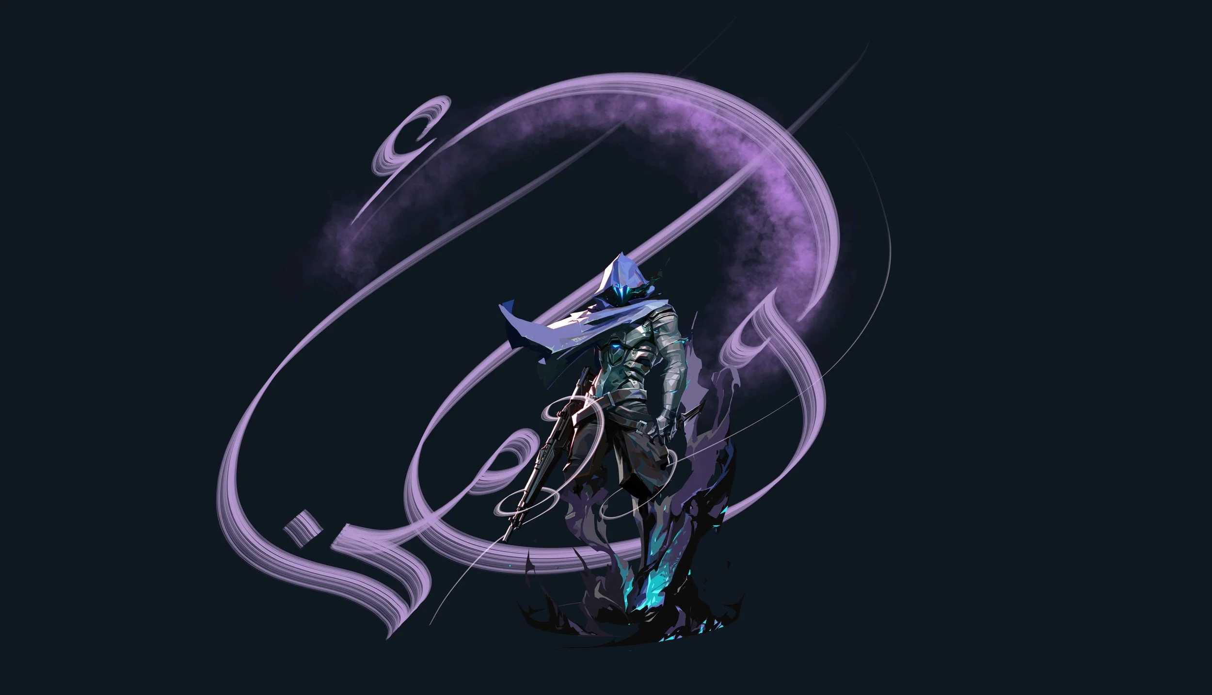 Desktop wallpapers that blend the key art of VALORANT agents with beautiful calligraphy that captures both the name and the essence of each character in Arabic.